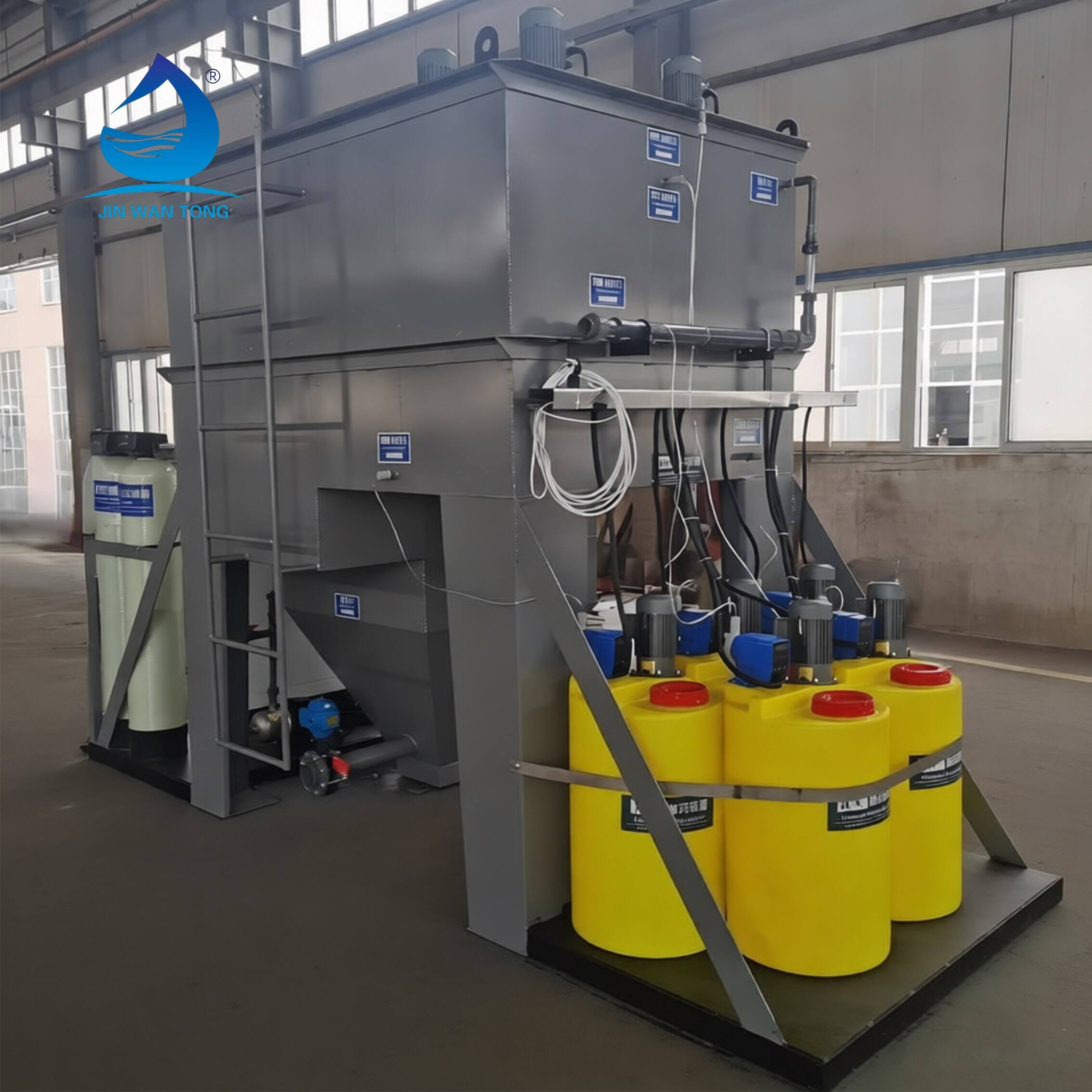 The dissolved air system of Jinwantong aeration flotation machine is a patented product after 20 years' practice. The internal structure is optimized, and it only needs to be debugged once, and then it can be directly operated after shutdown and restart, without secondary debugging. Convenient installation and simple debugging, even non-professionals can easily complete air flotation debugging under the remote guidance of our company.